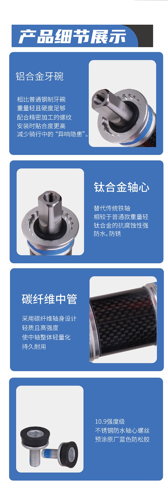 景曄鈦合金方孔中軸山地車改裝陶瓷珠中軸113/118/120/122.5