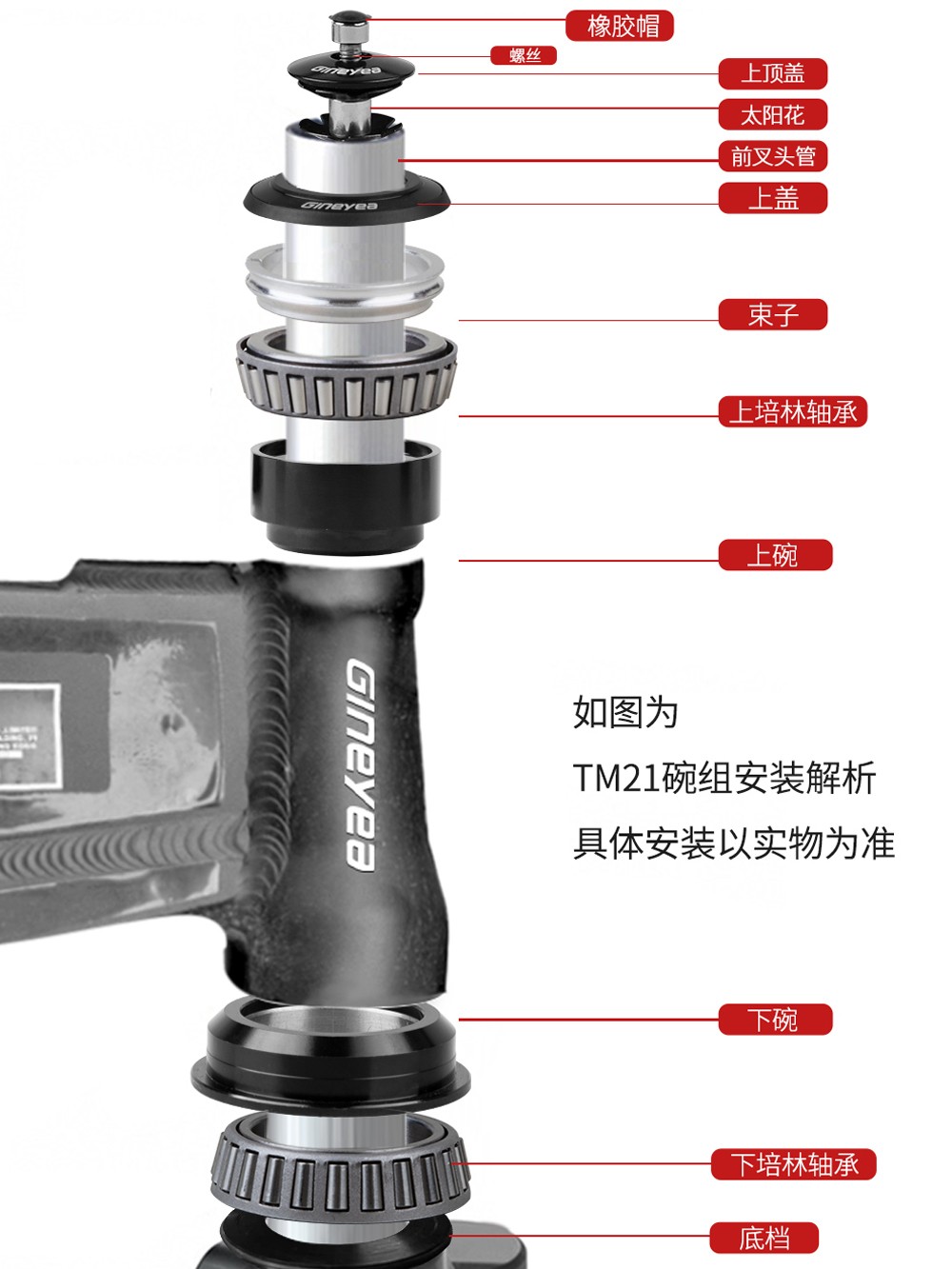 GINEYEA電摩車頭碗組越野摩托車錐管44-55mm滾針培林前叉軸承底座