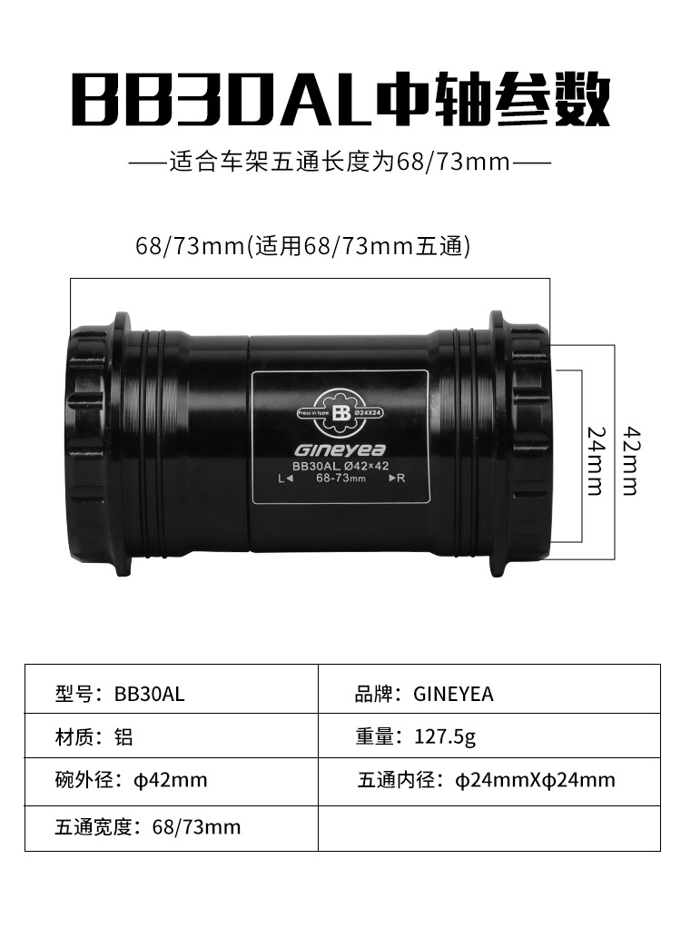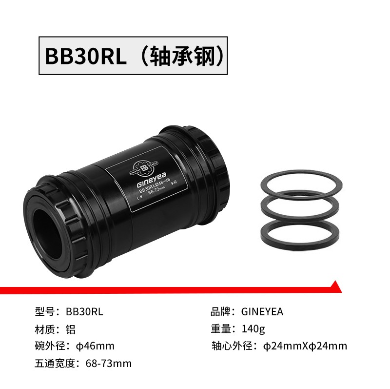 景曄山地自行車培林對鎖中軸中空一體牙盤BB中軸壓入式螺紋中軸