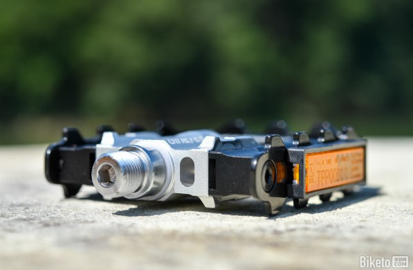鉻鉬鋼軸心隱藏在中座內,精度高,可以在小空間內堅固、穩定地轉動,大力踩踏也不會松動。內部采用高品質雙自潤軸承,外部具有防塵蓋和密封環,雖然會帶來一些轉動阻力,但可以減少雨水灰塵進入軸心的幾率,大大提升腳踏的耐磨性和使用壽命。