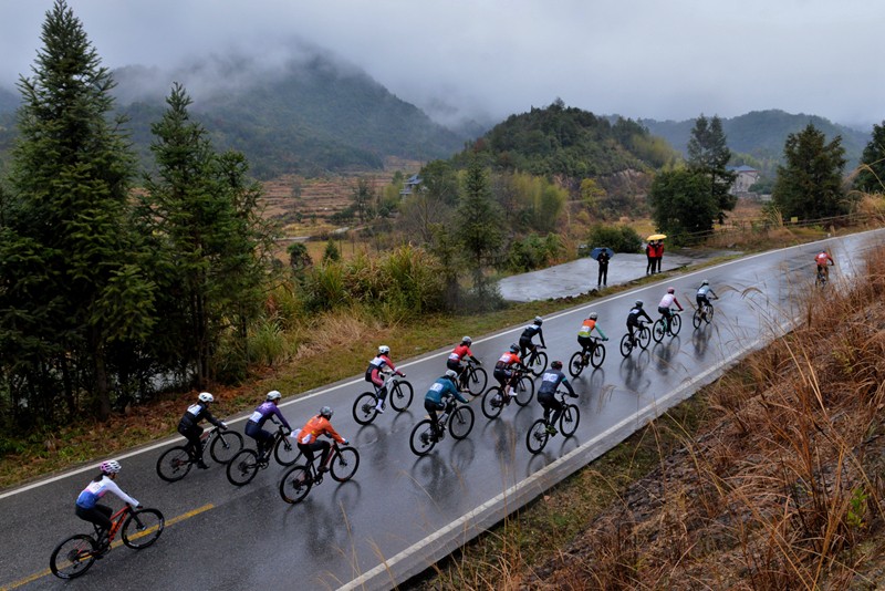今年的橫峰分站賽賽道穿行的鄉(xiāng)鎮(zhèn)路線全長(zhǎng)40.8公里,沿途有水庫(kù)、山林、荷塘、稻田、古村落,有高低起伏的山巒,有遍布于崇山峻嶺間的流泉飛瀑、竹濤林海以及若隱若現(xiàn)的古樸農(nóng)舍,有驚險(xiǎn)刺激的陡坡,使比賽既具有極佳的觀賞性,又充滿了速度與激情的挑戰(zhàn)。盡管比賽當(dāng)天天氣寒冷有微風(fēng)細(xì)雨相伴,但是參賽的選手們還是熱情不減,破風(fēng)騎行!