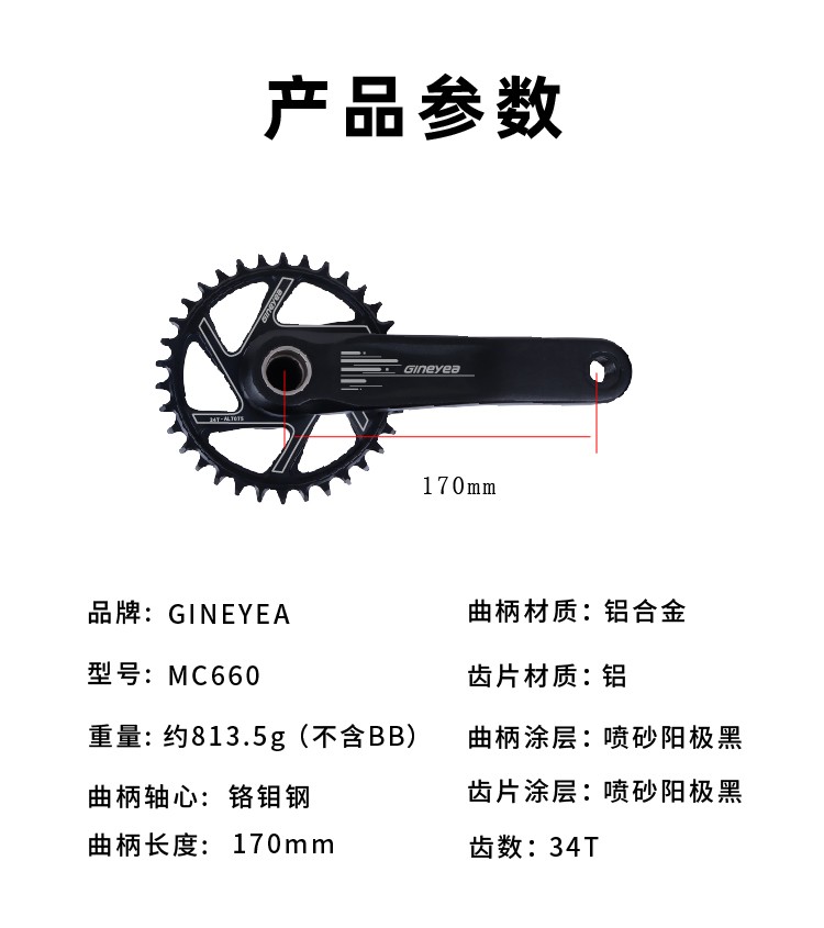 景曄山地車正負齒牙盤曲柄中空一體牙盤170改裝單盤36T自行車配件