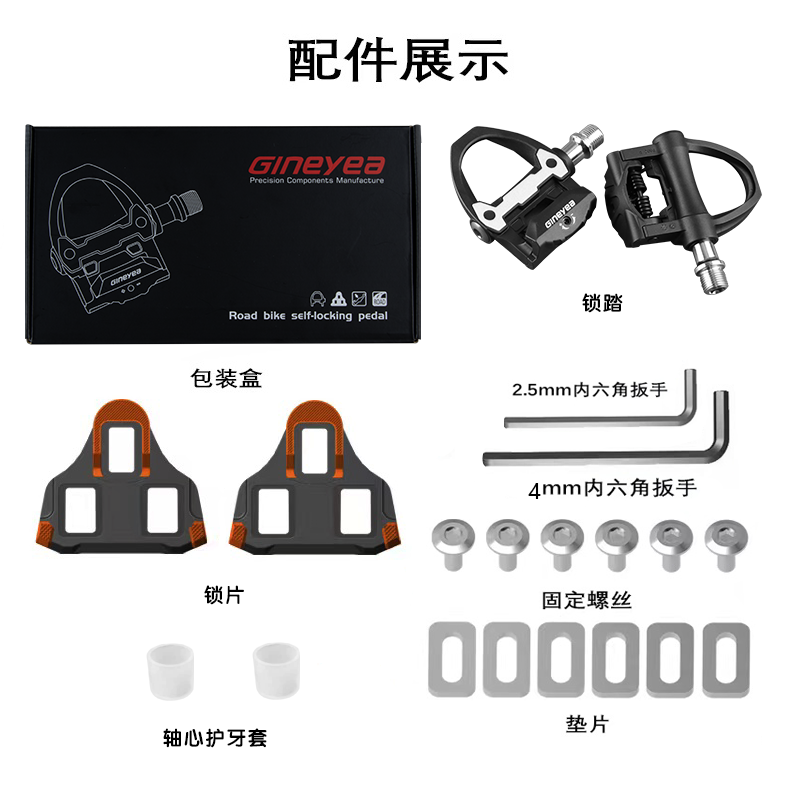 產(chǎn)品描述:品牌:GINEYEA(捷尼亞) 型號:P602 品號:13010426 品名:公路車鎖踏PRO(附鎖片6°)黑色執(zhí)行標(biāo)準(zhǔn):ISO4210 工藝:本體及扣片注塑成型材質(zhì):本體及扣片為工程塑料 軸心為鉻鉬鋼 顏色: 黑色/紅色/淺藍(lán)/橙色#公路車專業(yè)自鎖鎖踏,適用SPD-SL系統(tǒng),自帶鎖片體驗不一樣的騎行速度、穩(wěn)定、省力,踏板流線型一體化設(shè)計,高強(qiáng)度質(zhì)量輕的尼龍材料加持,一對鎖踏僅重約278g,鎖片重量約88g,松緊度可調(diào)節(jié)的張力設(shè)置,靈...