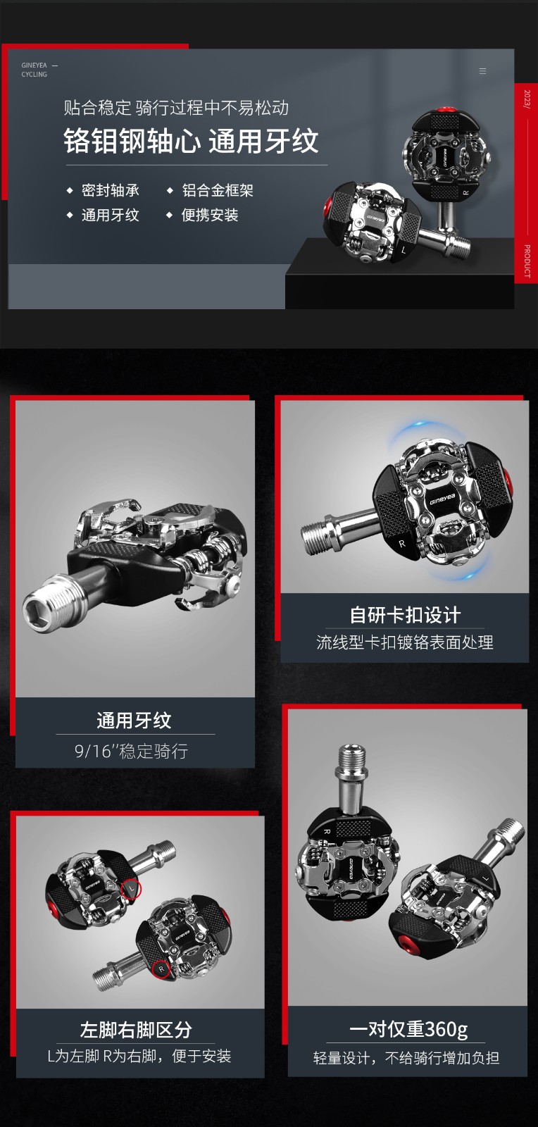 景曄鎖踏山地車自鎖腳踏鋁合金密封軸承鎖踏板附鎖片騎行零配件