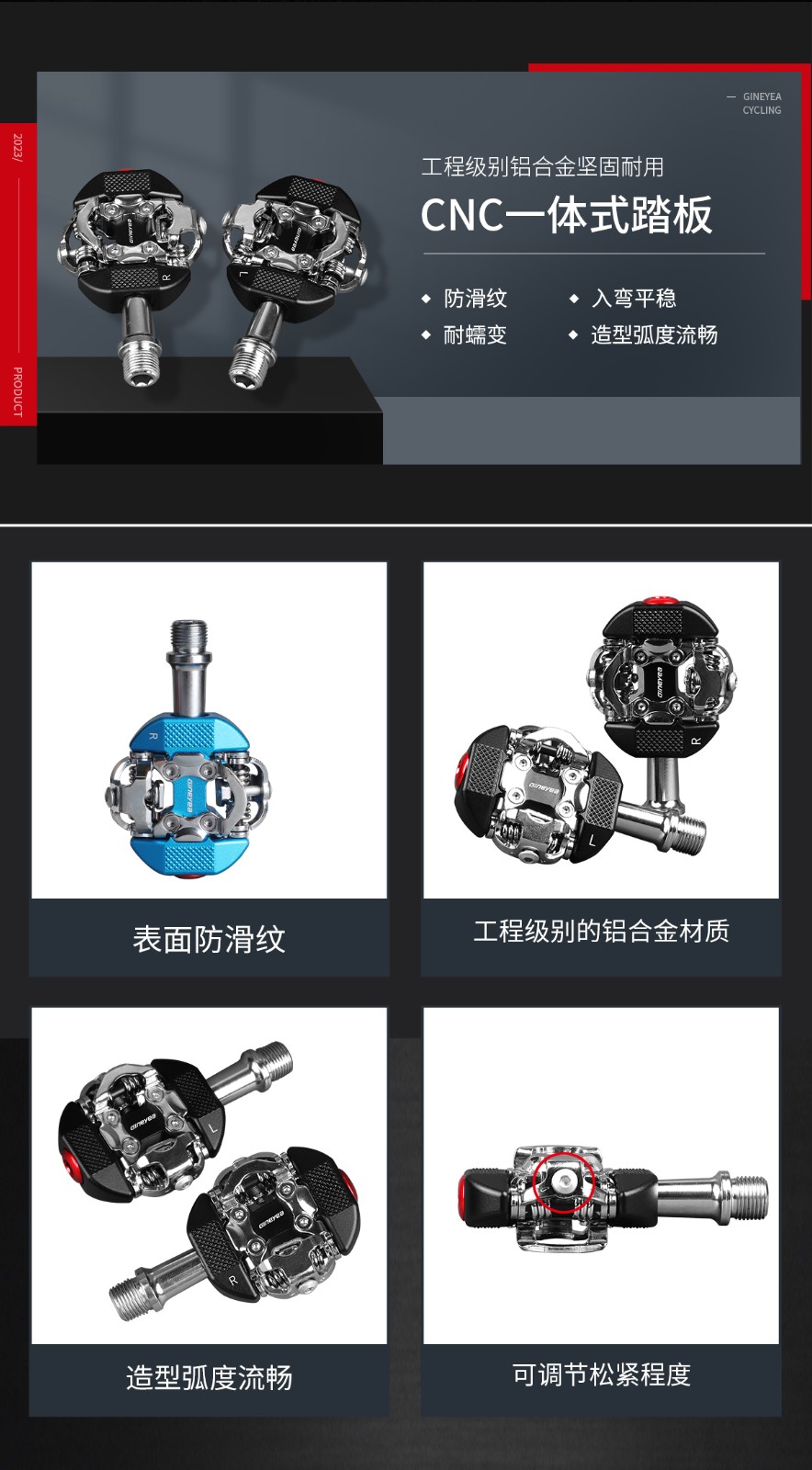 產品描述:名稱:CNC鋁合金鎖踏(含SPD鎖片)材質:鋁合金表面處理:陽極軸心:鉻鉬鋼產品顏色:黑色/紅色/藍色重量:360g(一對)軸承:培林+DU口徑:9/16通用螺紋適用車型:山地車,休閑車